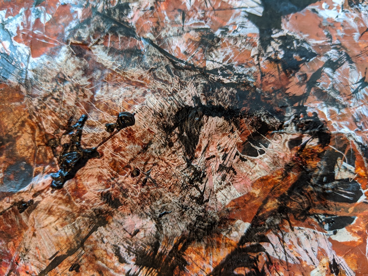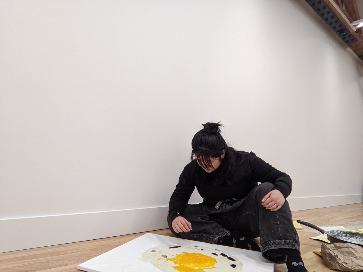 A reflection of emotional intensity and complexities manifested into tangible works of art. Her artistic process involves blending several traditional techniques ranging from sculpting, printmaking, water-based painting, incorporating both Eastern & Western calligraphy foundations to create contemporary abstract paintings.