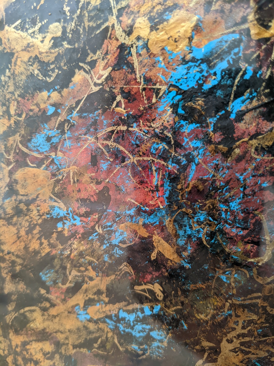A reflection of emotional intensity and complexities manifested into tangible works of art. Her artistic process involves blending several traditional techniques ranging from sculpting, printmaking, water-based painting, incorporating both Eastern & Western calligraphy foundations to create contemporary abstract paintings.